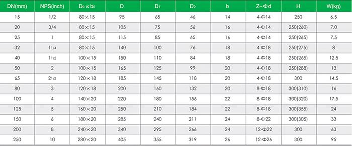 主要外形尺寸、连接尺寸和重量